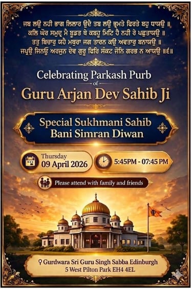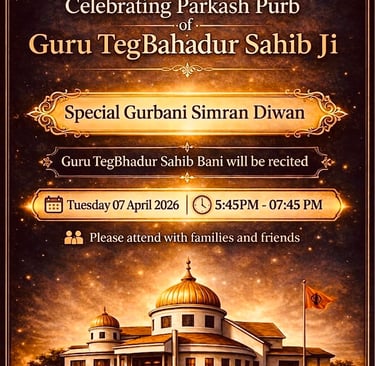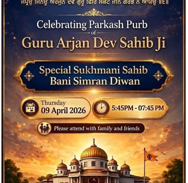 Khalasa Sirjana Diwas - Sri Akhand Path Sahib, Arambh Sunday 12-Apr-26 12PM - Bhog Tueday 14-Apr-26 6PM